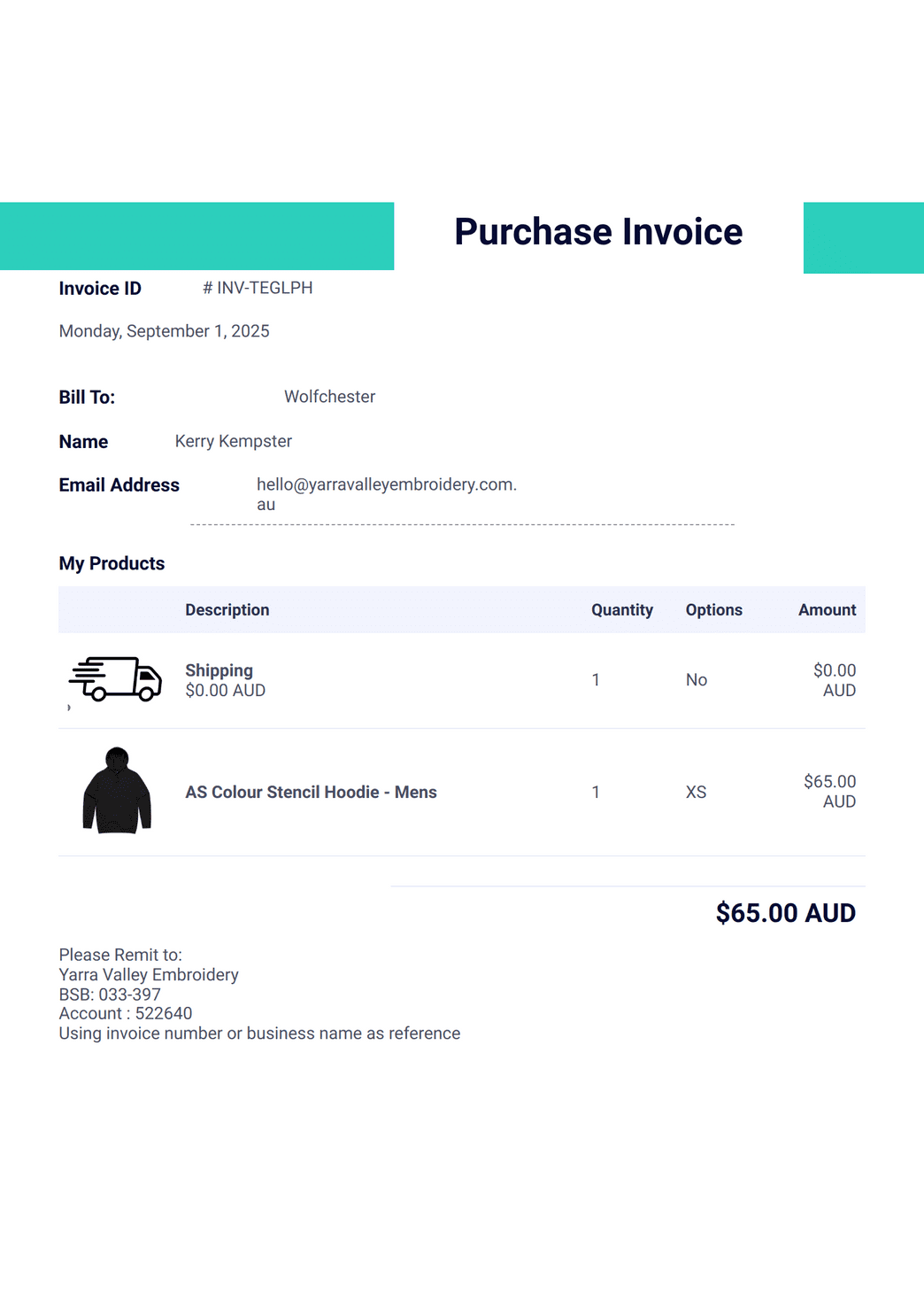 YVE Invoice
