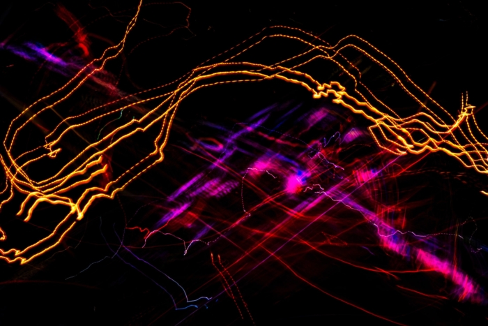 A black background with colorful lines of light