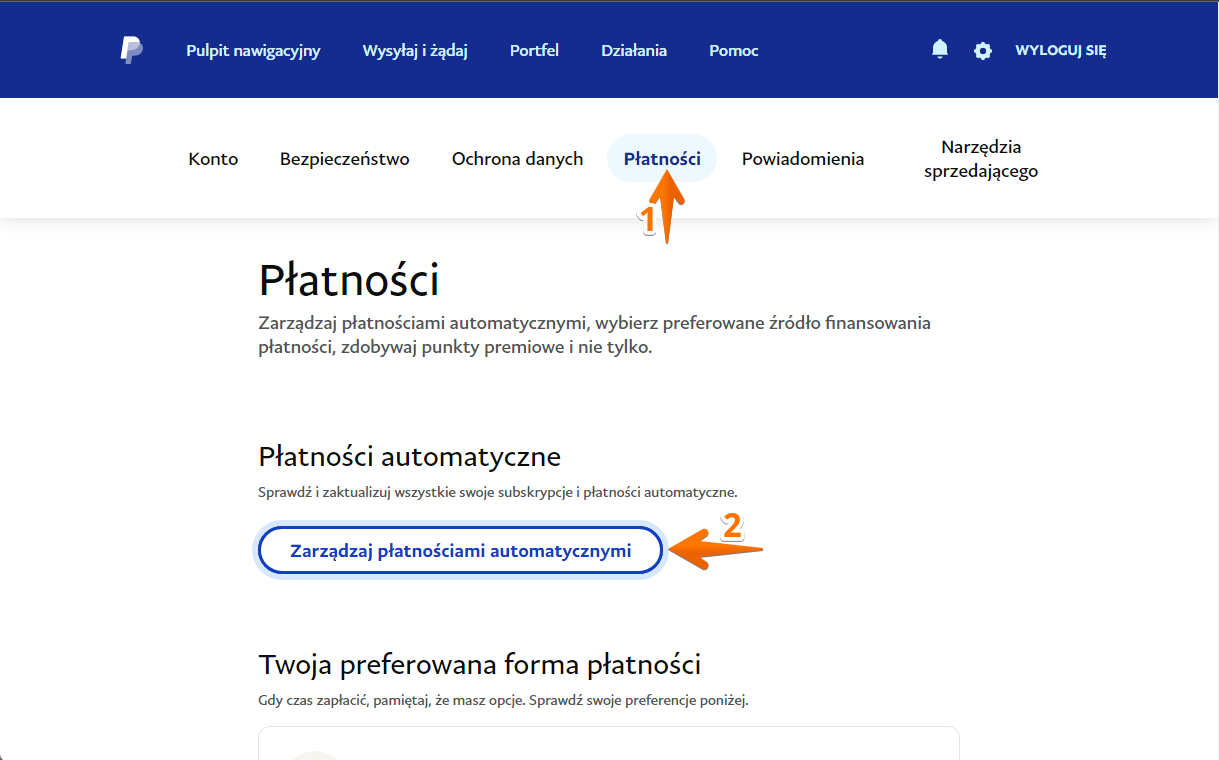 - Kliknij przycisk Zarządzaj płatnościami automatycznymi.