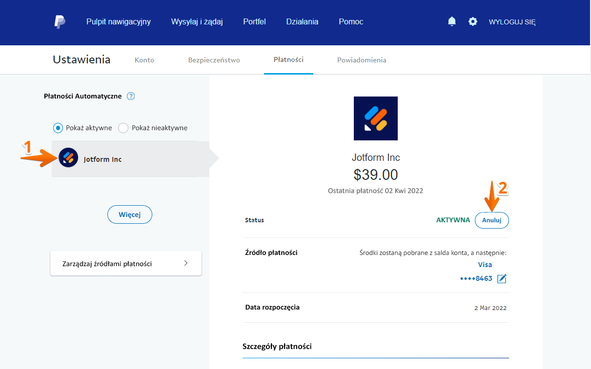- Przejdź do zakładki Płatności.