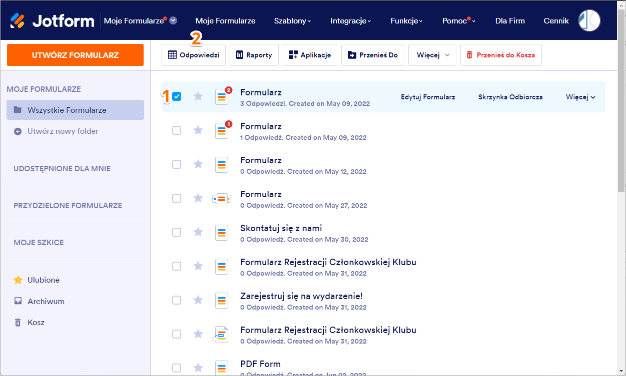 - Przejdź do Moich Formularzy i wybierz formularz.
