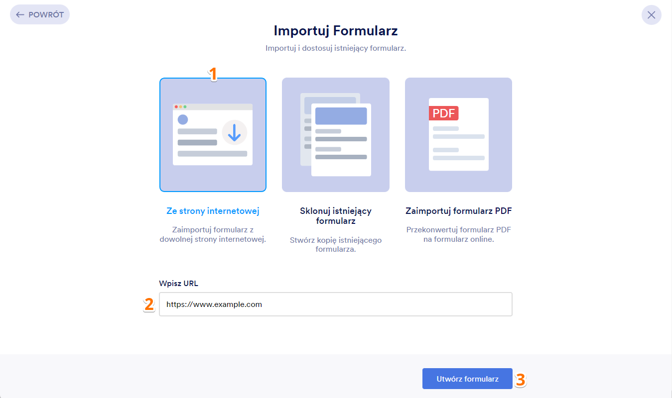 - Wprowadź adres URL formularza.