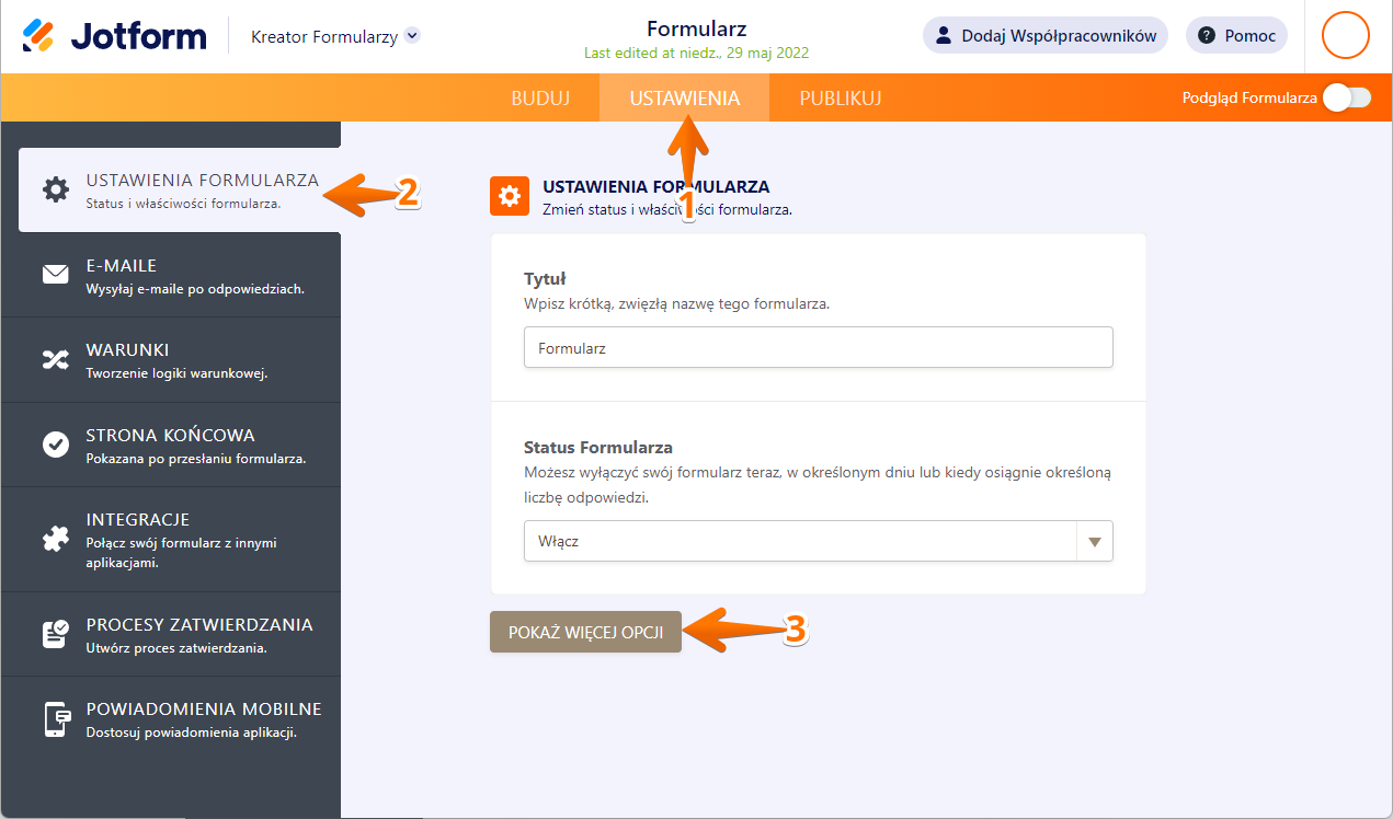 - Kliknij Ustawienia Formularza.