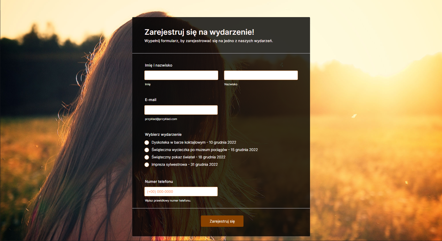 W celach demonstracyjnych, wykorzystamy formularz z pytaniem Wybierz wydarzenie.
