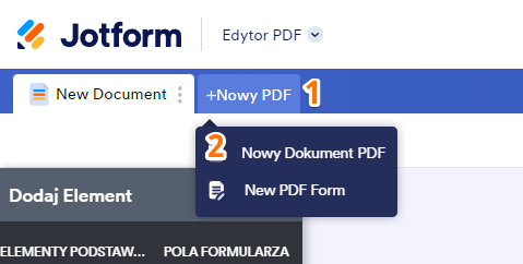 By dodać szablon dokumentu PDF, w edytorze PDF, kliknij Nowy PDF, a następnie wybierz opcję Nowy Dokument PDF.