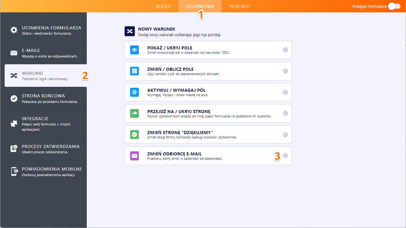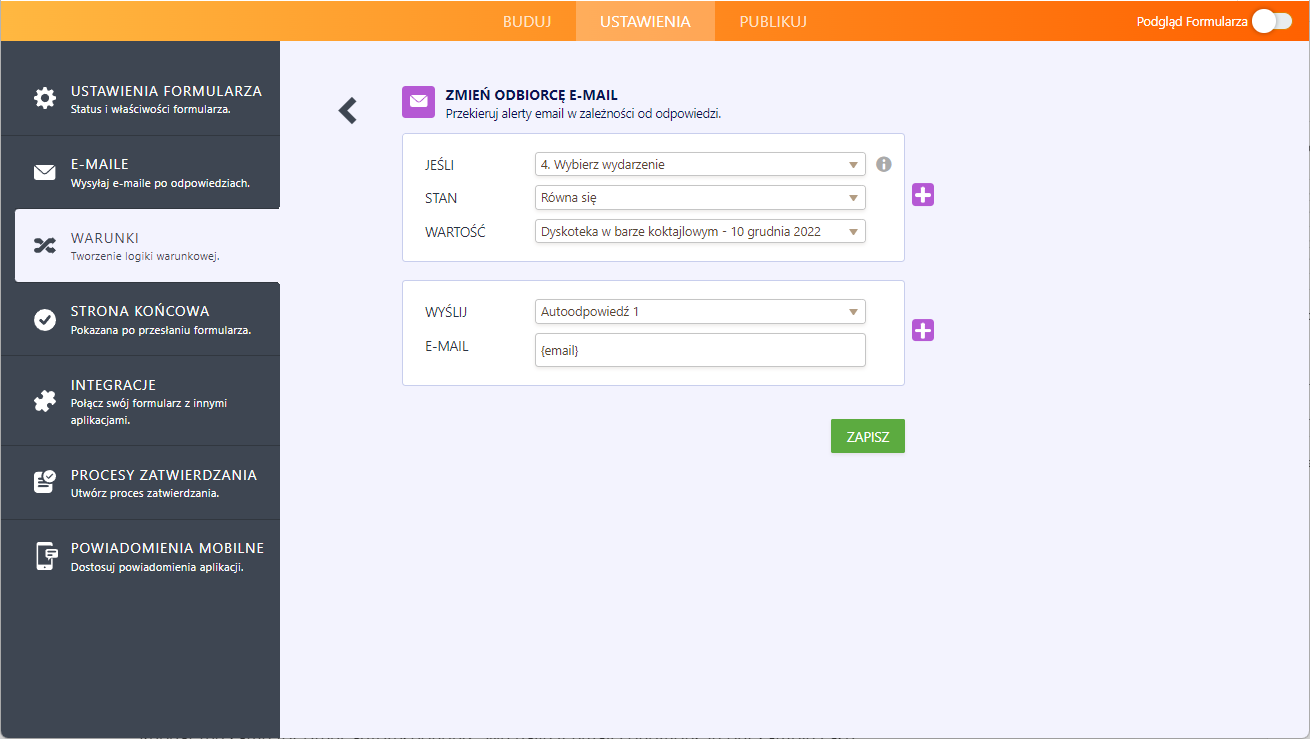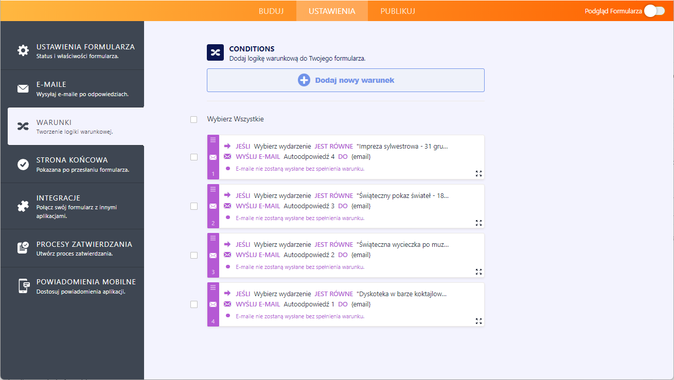 Ostatni krok to skonfigurowanie logiki warunkowej.