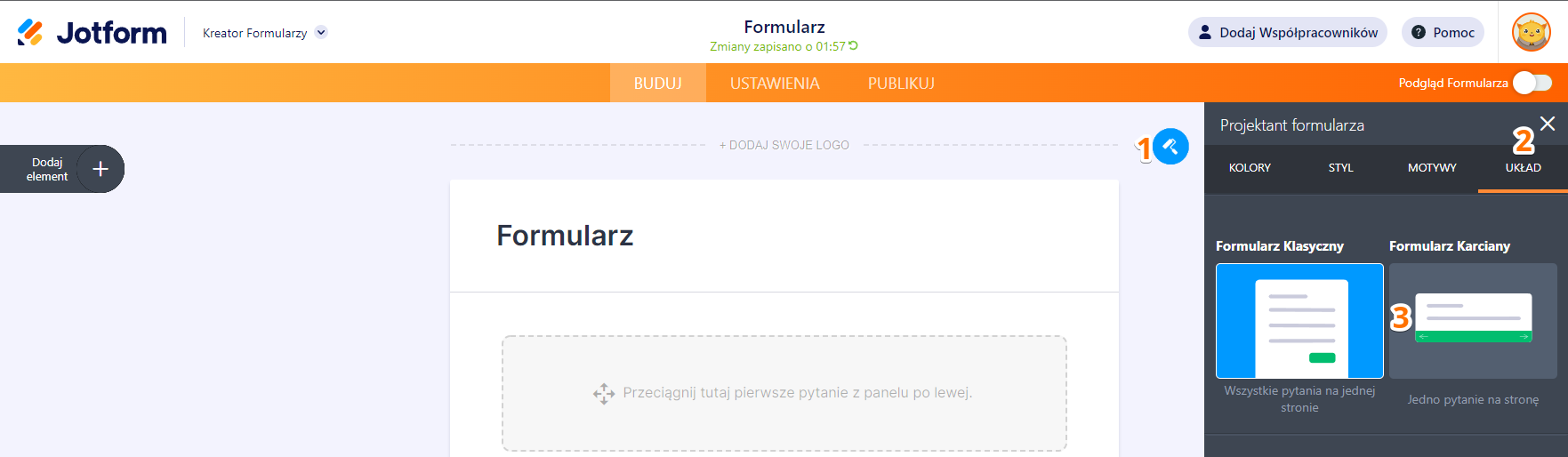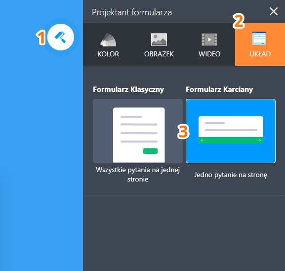 Po przejściu do Kreatora Formularzy, układ formularza możesz zmienić na dwa sposoby.