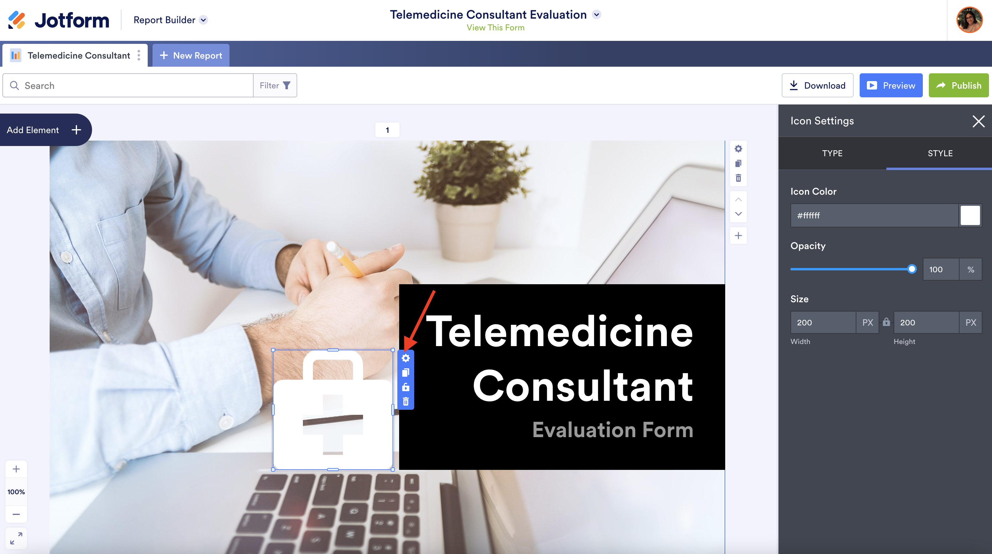 With a blank slate, you can change the font, set a background color, rearrange pages, and upload photos. Much like Jotform’s Form Builder, all you need to do is drag a graphic element onto your report and adjust the size or specifications to meet your needs.