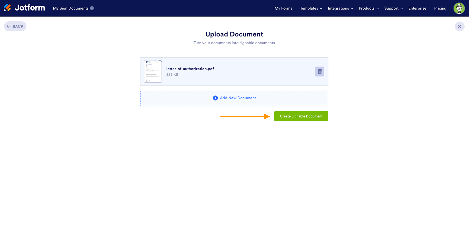 How to upload a document to Jotform Sign