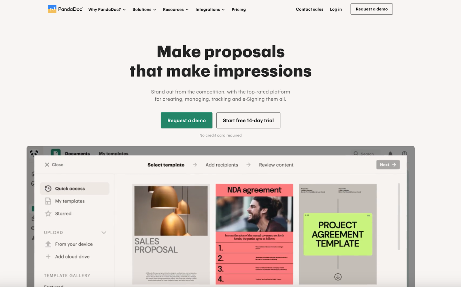 - Electronic signatures: According to PandaDoc’s website, e-signatures collected using its e-signature tool are legally binding and compliant with the E-Sign Act. PandaDoc also claims to enable UETA, HIPAA, and SOC 2 Type II compliance.