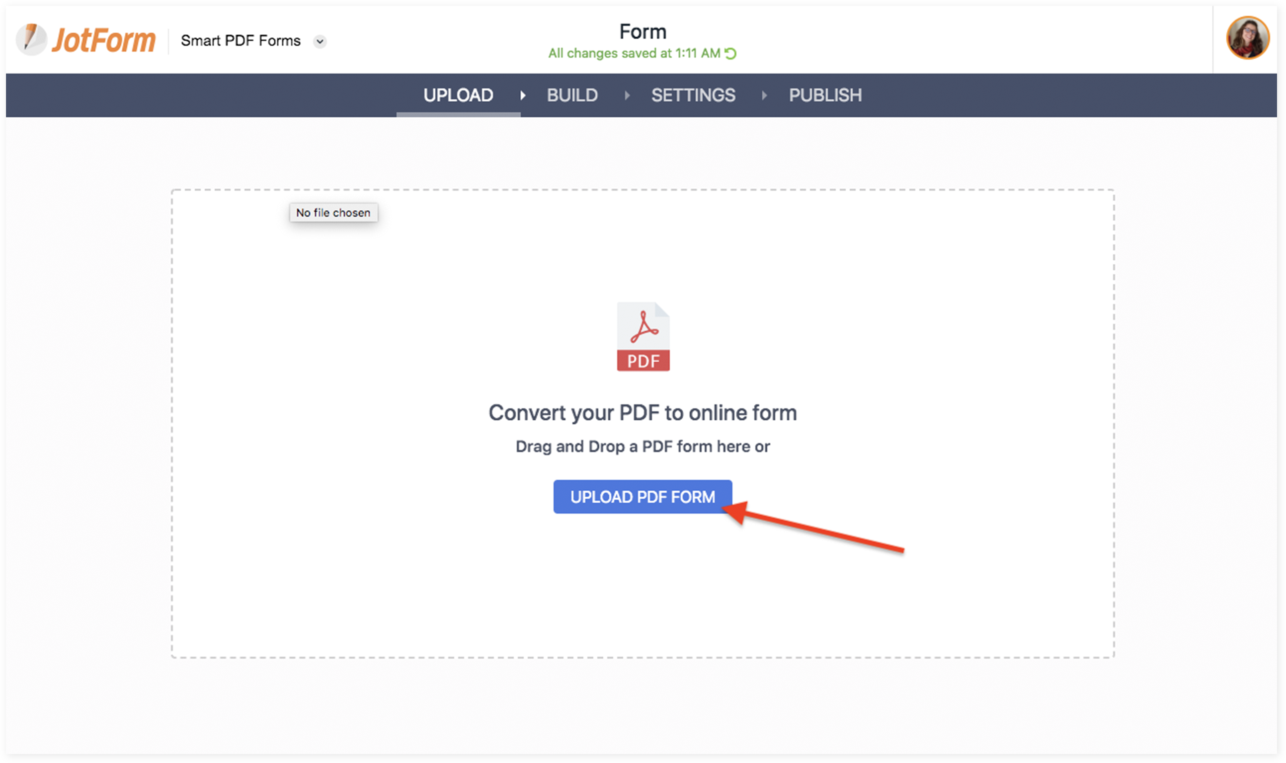 4. Click Upload PDF Form to locate the PDF form you want to turn into an online form.