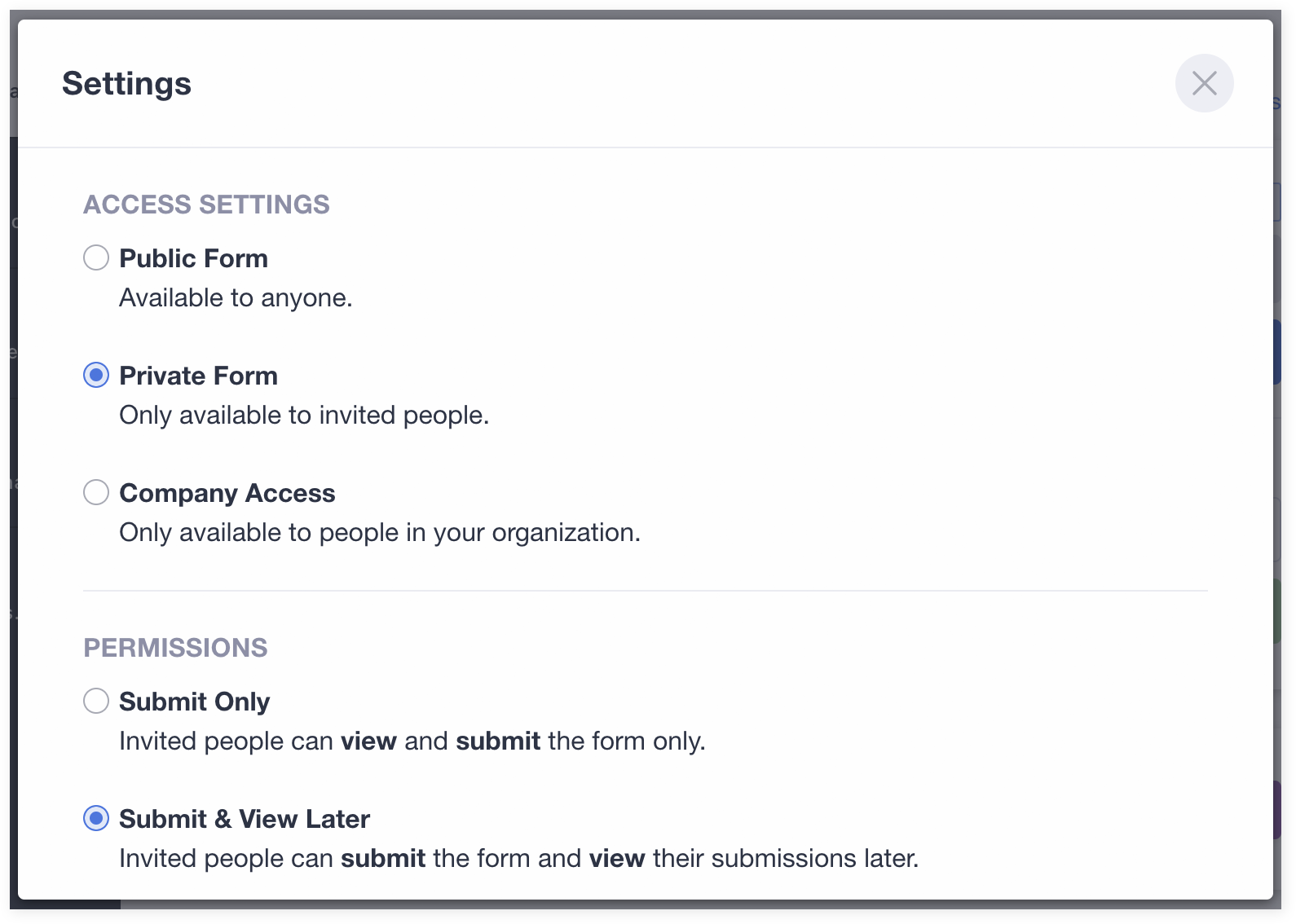 This feature also enables you to control who can see your form and what they can do with it.