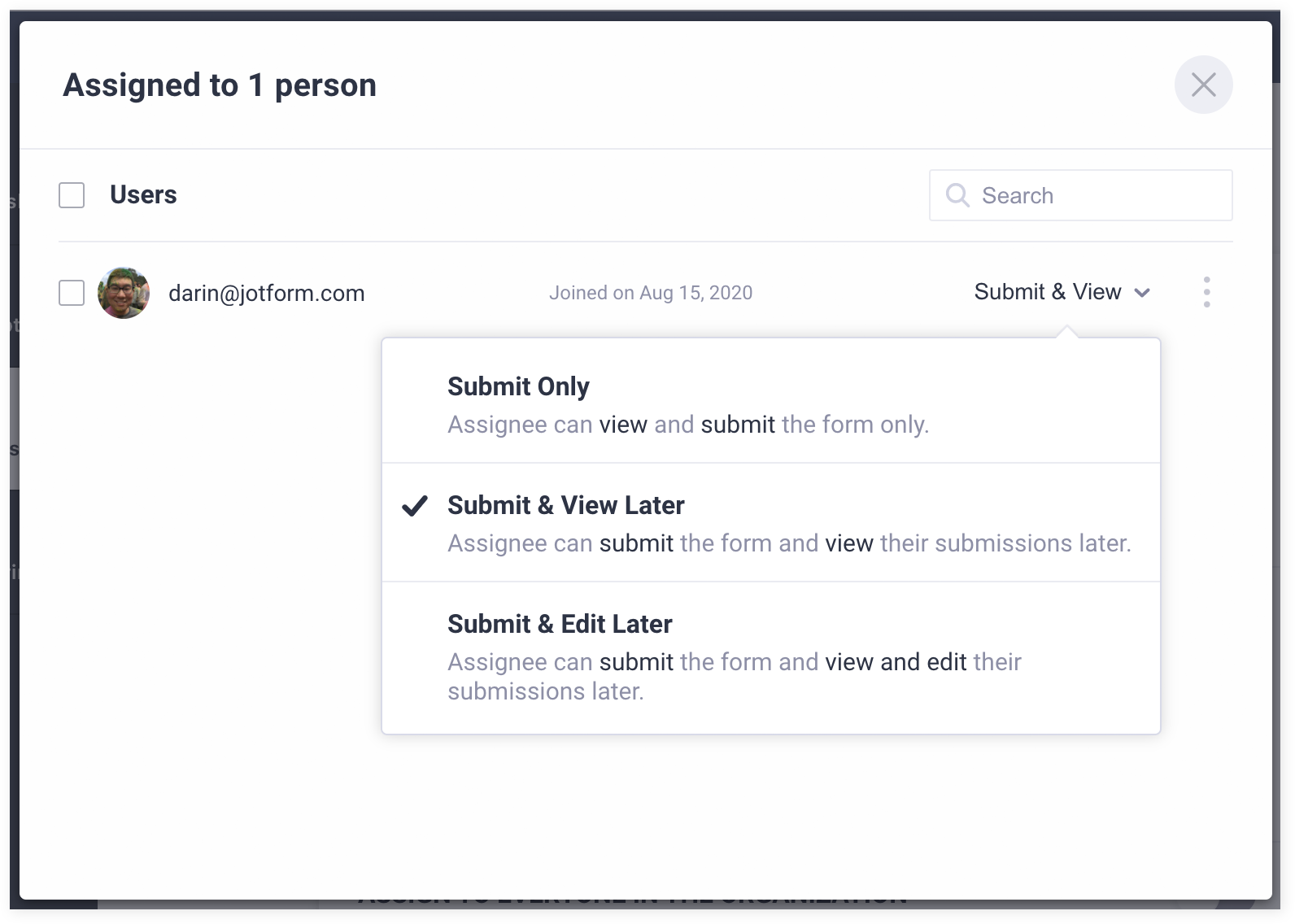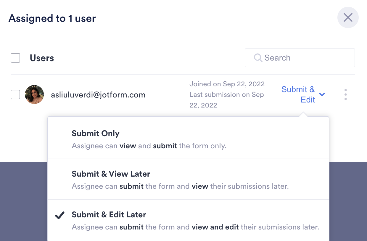 Jotform’s Assign Forms feature allows you to monitor who has access to your form and modify the type of access that they have at any given time.