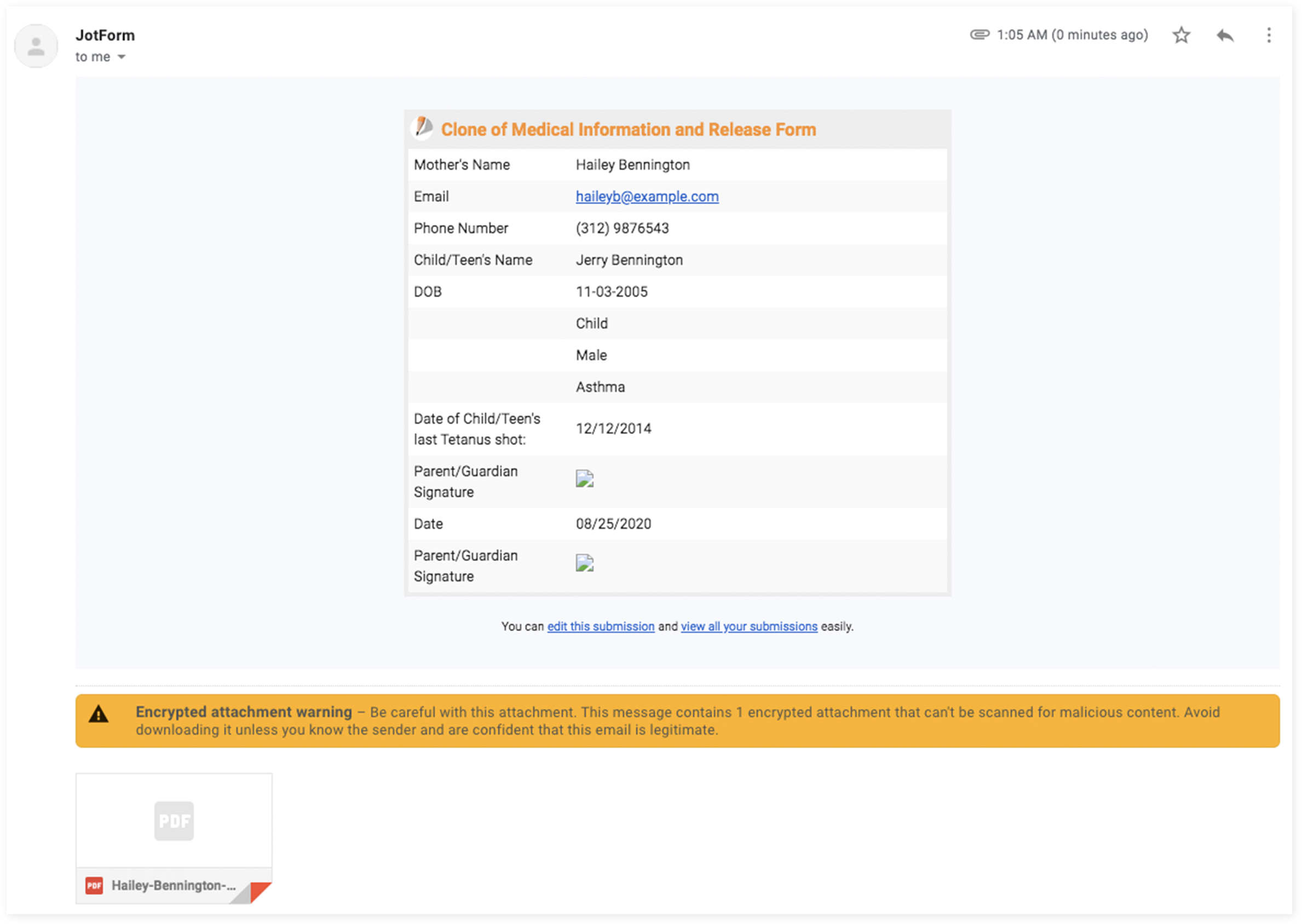 Once people fill out the online form, copies of the completed PDF can be shared with them, along with any colleagues or team members who may need that information.