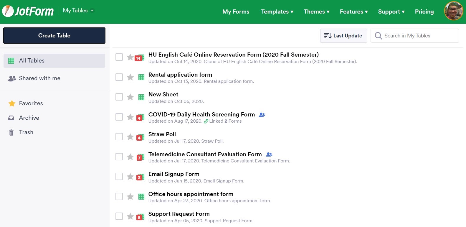 Jotform is closing that gap by enabling you to create a seamless workflow under a single platform. Once you create a customizable online form and share it, you can instantly view, organize, manage, analyze, and share any submitted responses within Jotform Tables.