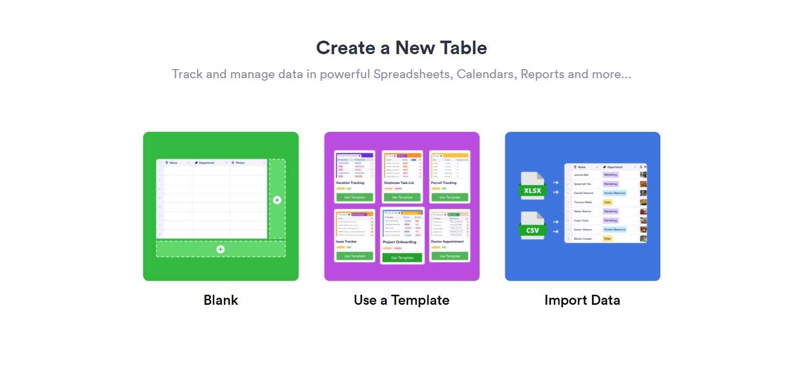 Seeing these workflows in action inspired our team of talented designers and copywriters to create more than 250 table templates that give your team a head start on customizing your workspace, including the following: