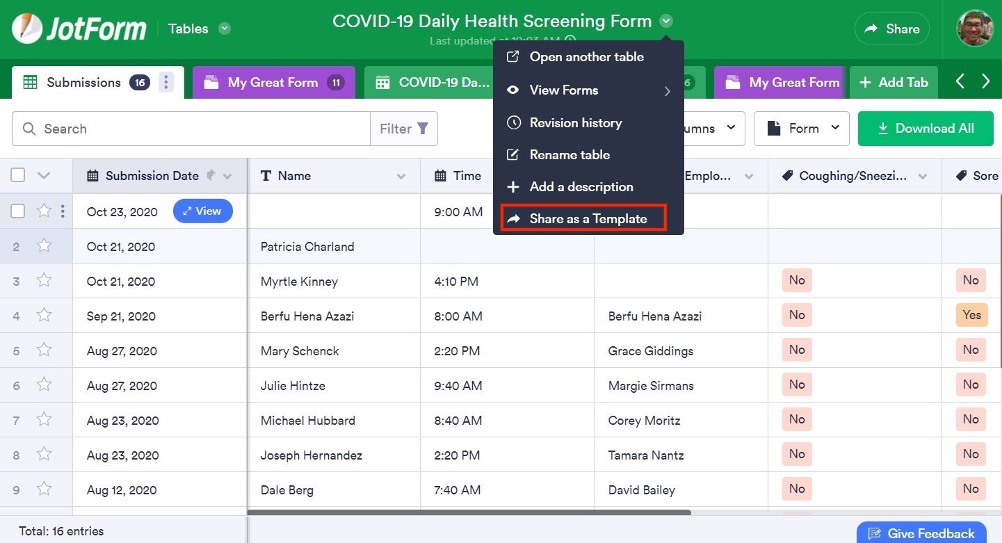 From what I understood from this new Jotform Tables product, I’ll be able to work on the data, analyze and act on it better. I'm going to give this a try and I'm hoping that it'll allow me to easily keep track of things and stay organized. Keep up the good work!