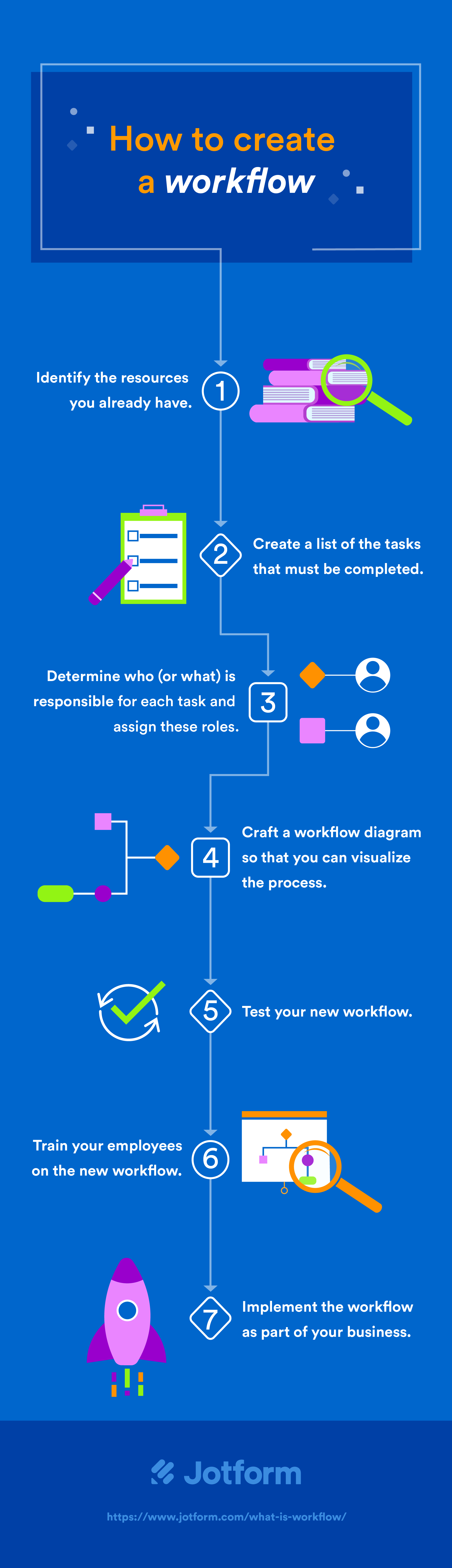 Workflows should be clear and realistic. Today, a multitude of platforms and tools, like Jotform Workflows, exist to help businesses design useful workflows and automate manual tasks, saving time and streamlining teamwork.