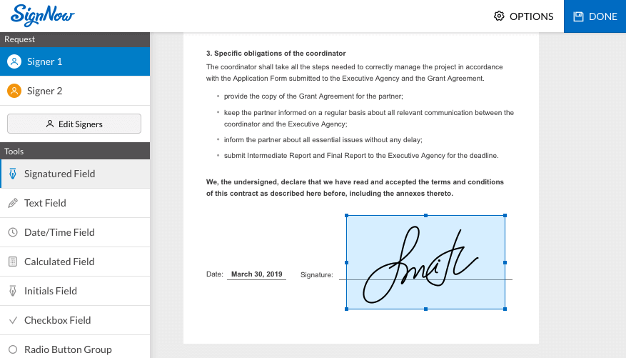 O signNow oferece a capacidade de aprovar, entregar e assinar documentos em qualquer dispositivo e em qualquer local. Ele possui modelos reutilizáveis para os processos comerciais mais comuns, além de oferecer a possibilidade de adicionar seu branding a cada convite de assinatura eletrônica enviado.