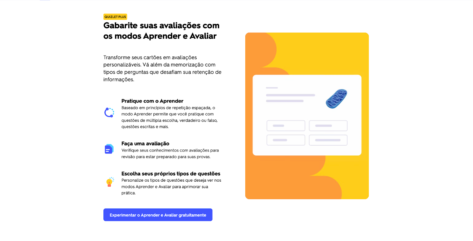 Com o Quizlet, tanto professores quanto alunos têm acesso a ferramentas de aprendizagem e estudo que podem proporcionar uma experiência educacional abrangente. Educadores usam a plataforma para criar planos de estudo e flashcards, e os flashcards a tornam um complemento popular para estudantes se preparando para as provas. Além disso, o Quizlet também oferece ferramentas semelhantes ao Kahoot! na forma de testes práticos e questionários interativos.