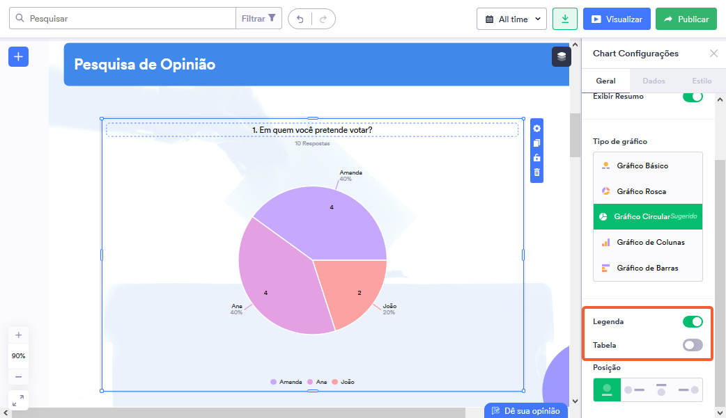 Você pode até mesmo tornar seus dados mais fáceis de compreender reorganizando a ordem na qual estes serão exibidos e adicionando uma legenda ou tabela.
