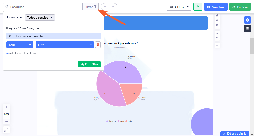 O Criador de Relatórios Jotform pode analisar respostas enviadas dentro de um certo intervalo de tempo ou filtrar dados em seu relatório com base em respostas específicas para determinadas perguntas, permitindo-o coletar insights significativos e relevantes.