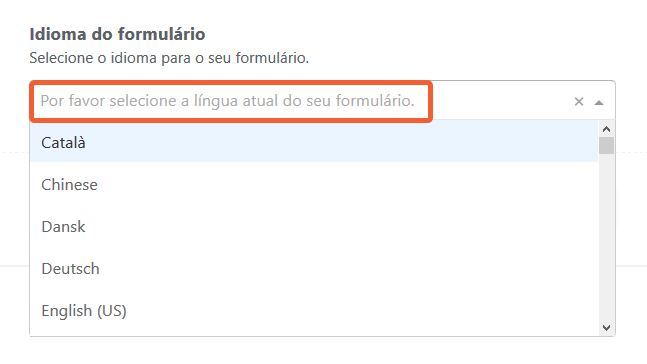 - Selecione seu idioma padrão a partir da seção Idioma do Formulário.