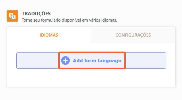 - Na seção Traduções, clique em Adicionar Idioma.