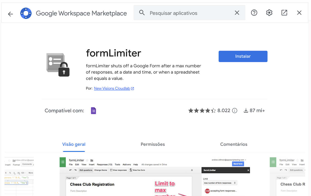 - Busque o complemento formLimiter e instale-o em sua conta.