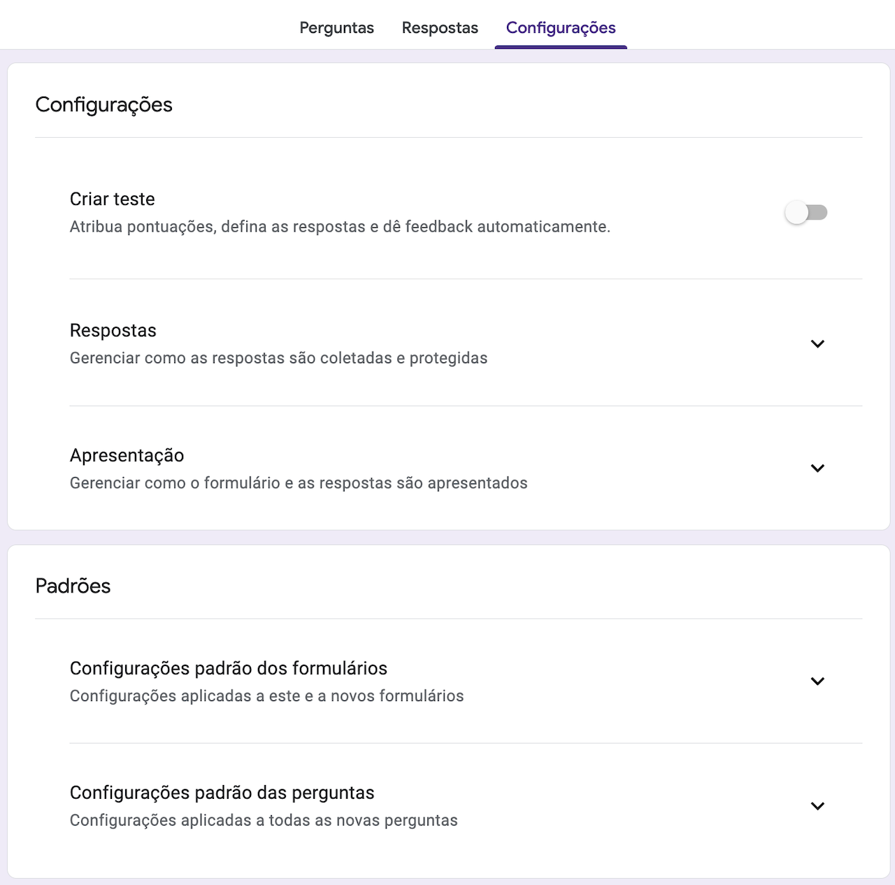 No menu suspenso Respostas, há uma configuração que restringe as pessoas a preencherem o formulário uma única vez. Se é isso que você realmente está buscando, esse recurso pode ser melhor do que a proteção por senha.