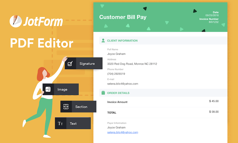 Por isso, estamos orgulhosos em anunciar o Editor de PDFs Jotform, uma nova maneira de automatizar a criação de documentos elegantes e personalizados, os quais você pode compartilhar, baixar ou imprimir com o toque de um botão.