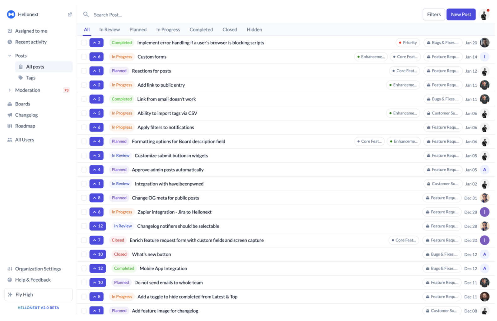 Melhor amigo dos gerentes de produtos de todas as partes do mundo, Hellonext os permite coletar votos de clientes para ideias e recursos de produtos, compartilhar atualizações em roteiros de produtos após a implementação de seu feedback e publicar registros de alterações que mostram aos clientes as atualizações e melhorias feitas nos produtos de forma contínua.