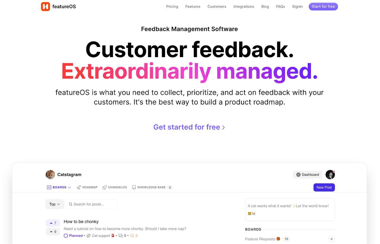 O FeatureOS suporta o crowdsourcing de feedback, transformando o processo de desenvolvimento de um produto em uma colaboração entre a empresa e seu público-alvo. Ele se integra a mais de 100 áreas de trabalho e plataformas de negócios.