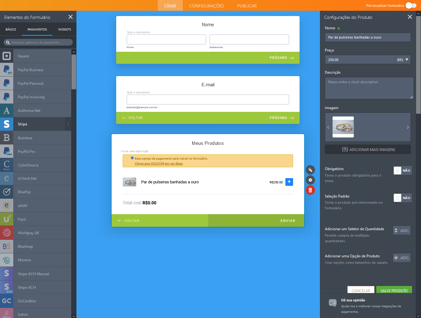 - Agora, tudo o que você precisa fazer é configurar as informações de pagamento através do Criador de Formulários JotForm. Caso esteja vendendo algo através de seu formulário, certifique-se de personalizar as informações de preço e o nome do produto, bem como adicionar quaisquer imagens.