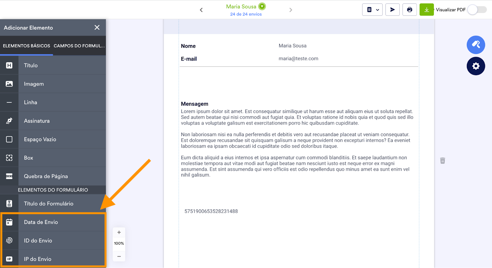 5. Adicione metadados sobre os formulários submetidos ao seu PDF