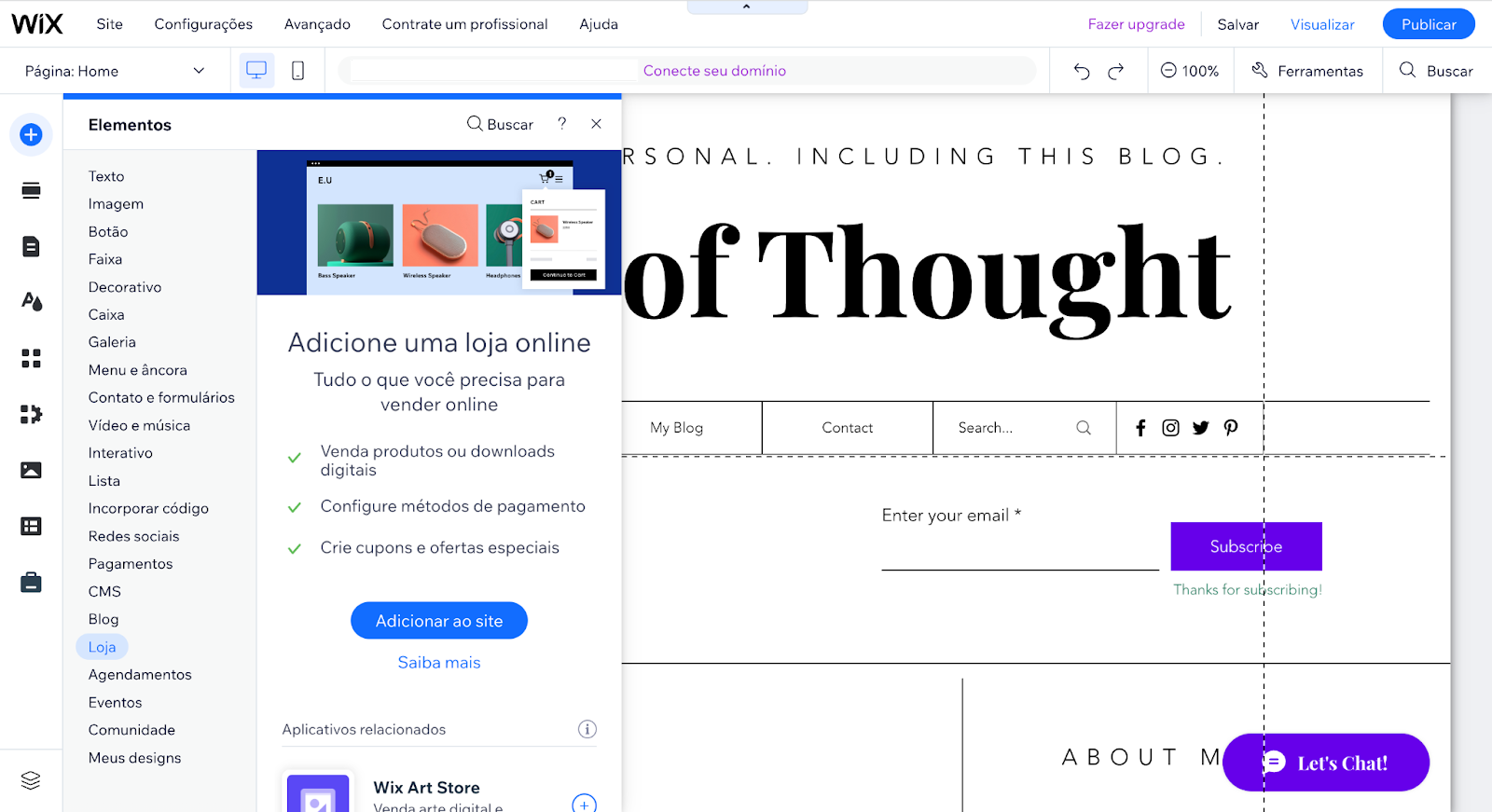 O Wix é semelhante ao Weebly, e sua comparação com o Shopify segue a mesma linha. O editor de sites arraste-e-solte do Wix é mais fácil de usar do que o do Shopify, mas não oferece tantas ferramentas de comércio eletrônico integradas.