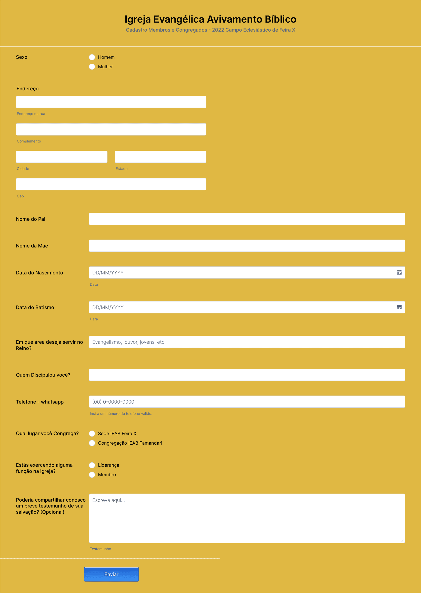 Formulário De Cadastro Para Igreja Pentecostal