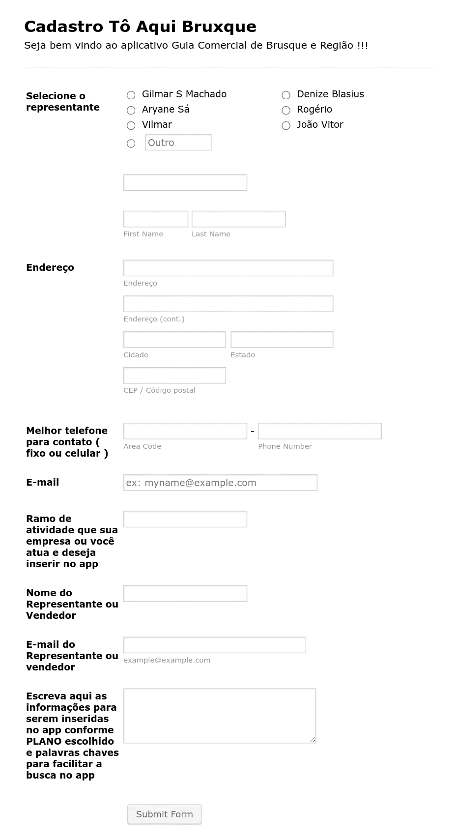 Este formulário facilitará o pedido de você e de seus clientes e a entrega em suas casas.