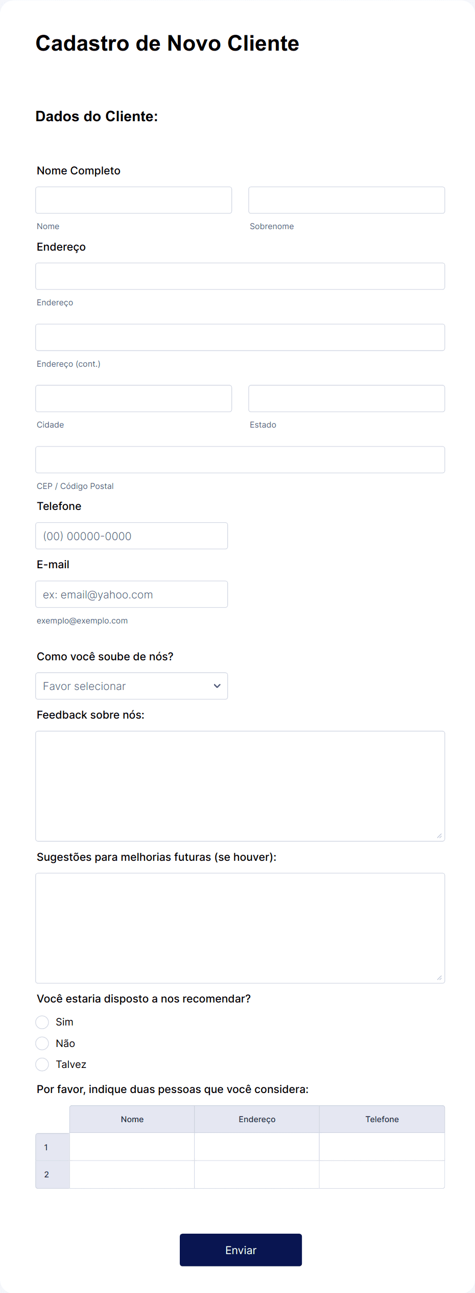 Os formulários para e-commerce automatizam o processo de vendas, reduzem erros manuais e proporcionam uma experiência fluida para os clientes, tornando mais fácil gerenciar pedidos e pagamentos.