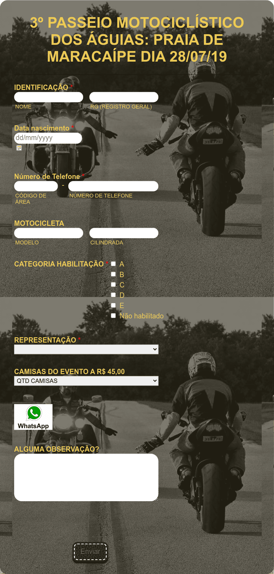 Sim, os formulários para inscrições podem ser personalizados para eventos, cursos, associações, oportunidades de voluntariado, agendamentos e muito mais, cada um com campos e requisitos específicos.