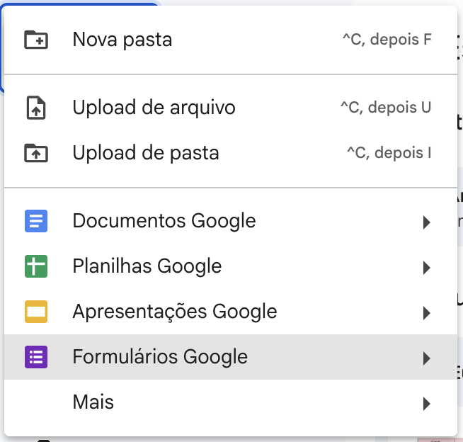 - Selecione Formulários Google