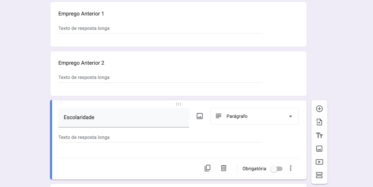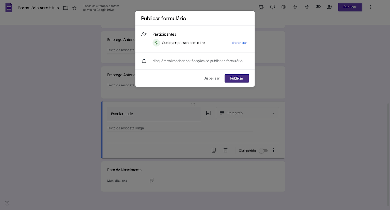 Criando um formulário de candidatura no Formulários Google