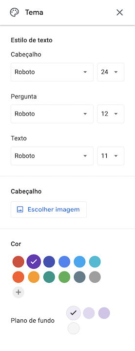 O Formulários Google oferece várias opções de personalização, como alterar paletas de cores e fazer upload de imagens personalizadas. No entanto, o Formulários Google é limitado à estética básica e em blocos típica das soluções Google, não sendo ideal para formulários com design mais elaborado ou personalizado.