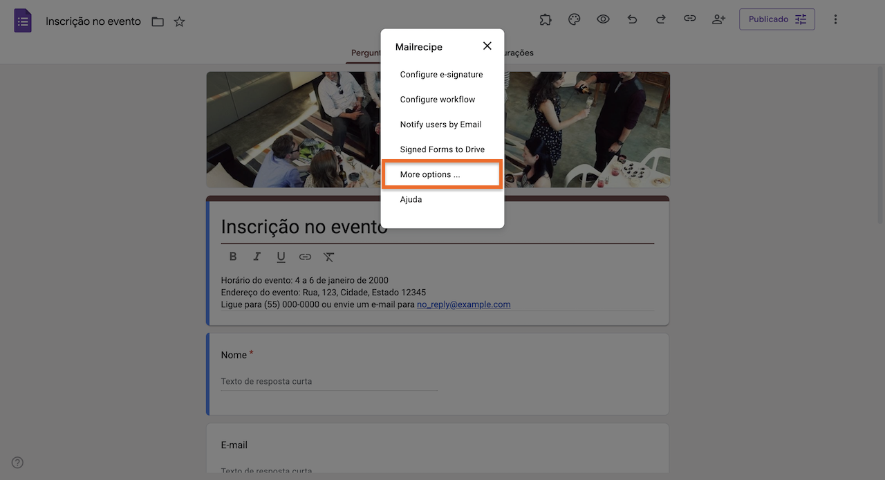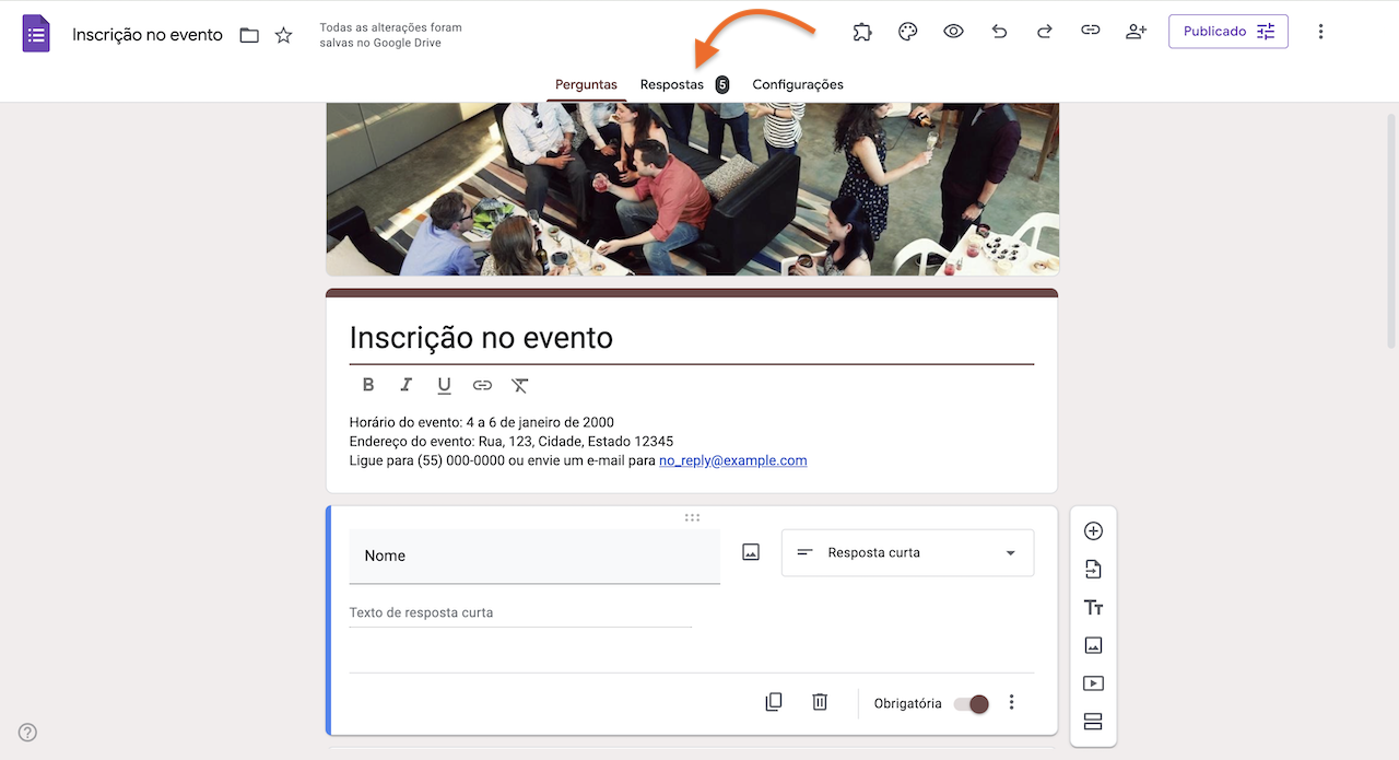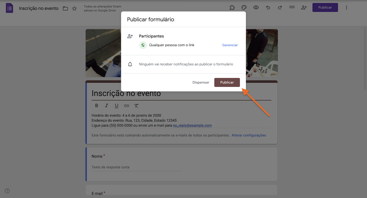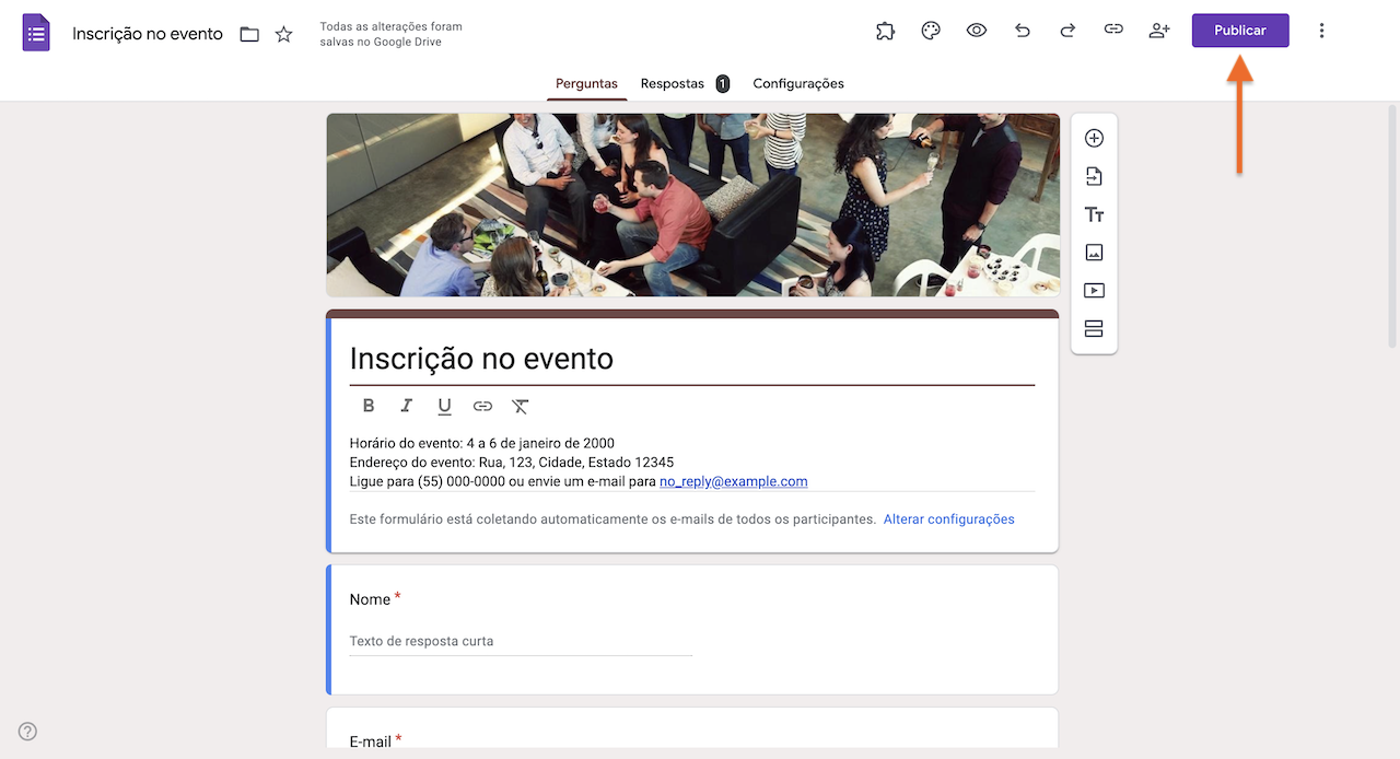 - Clique em Publicar para que os respondentes possam acessar seu formulário.