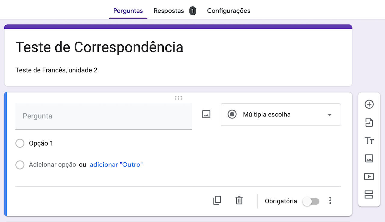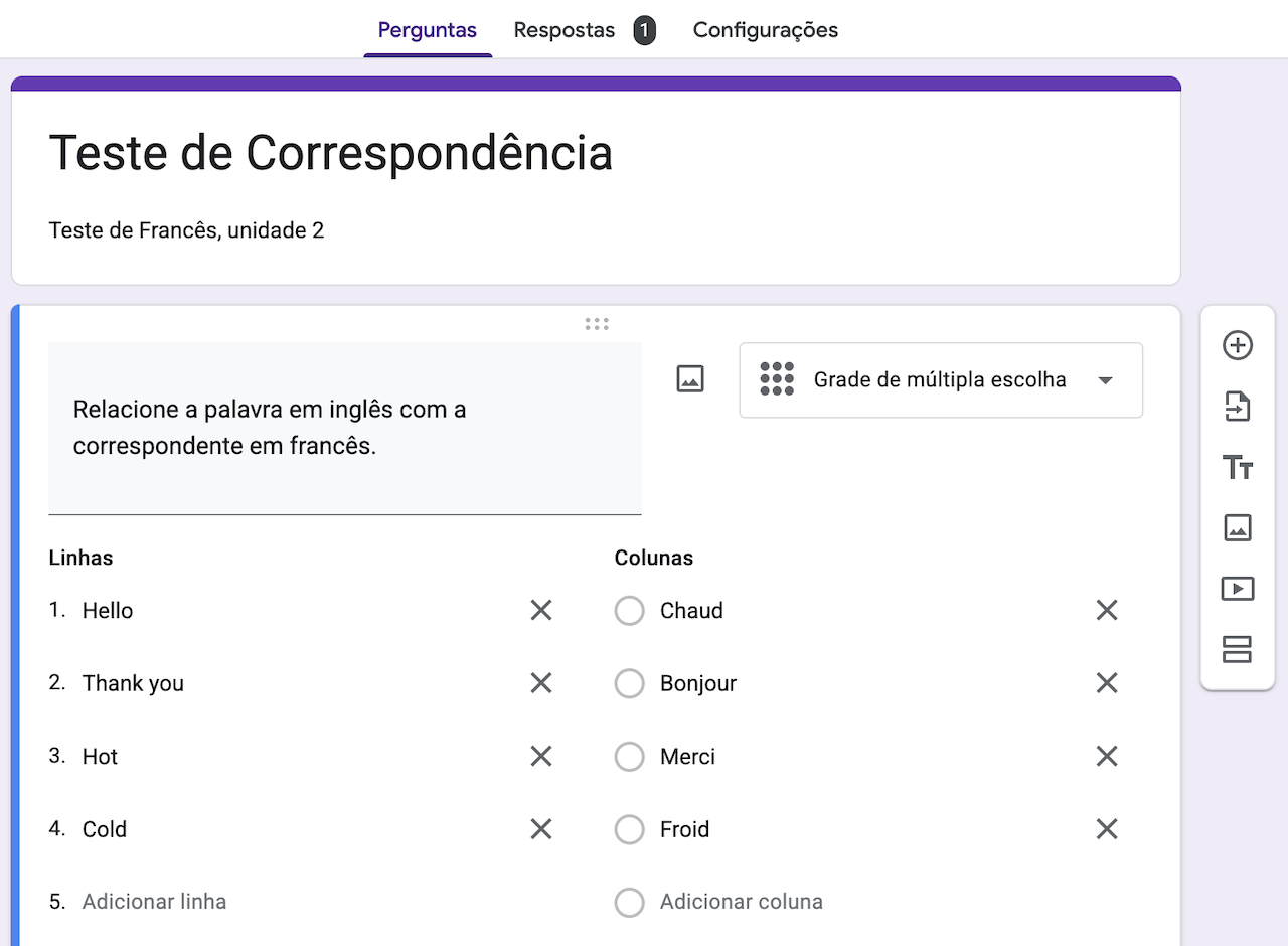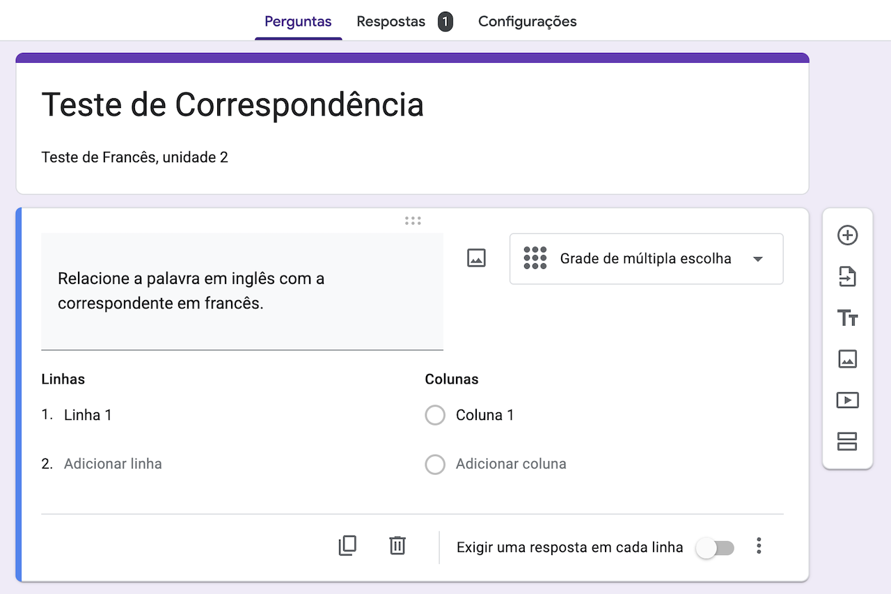 Como criar uma questão de correspondência no Formulários Google