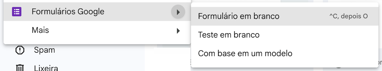 - Passe o cursor sobre a seta ao lado de Formulários Google no menu suspenso.