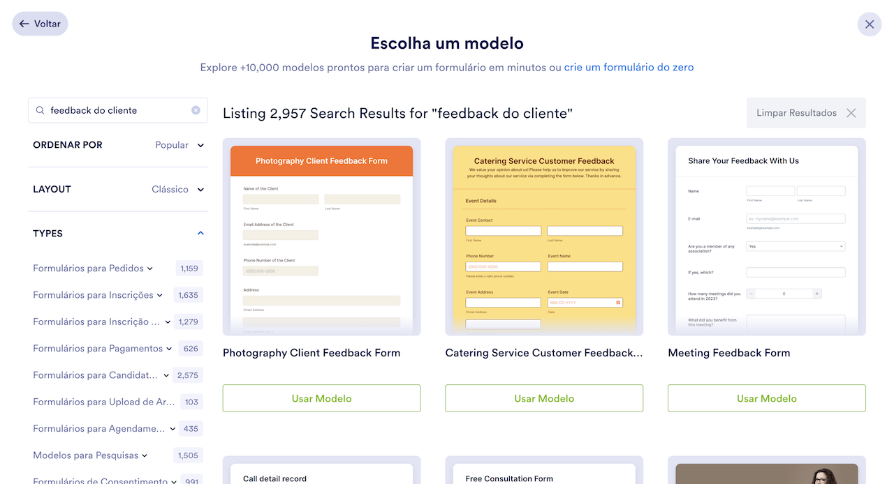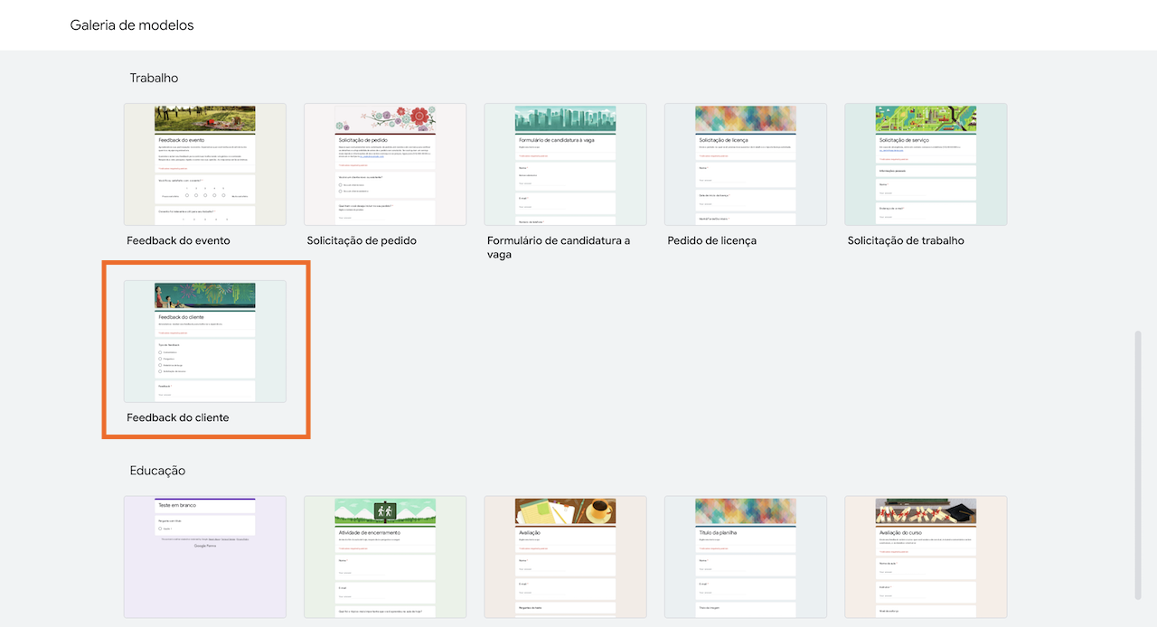 - Pesquise por “pesquisa de feedback do cliente” na biblioteca de modelos e selecione uma opção.