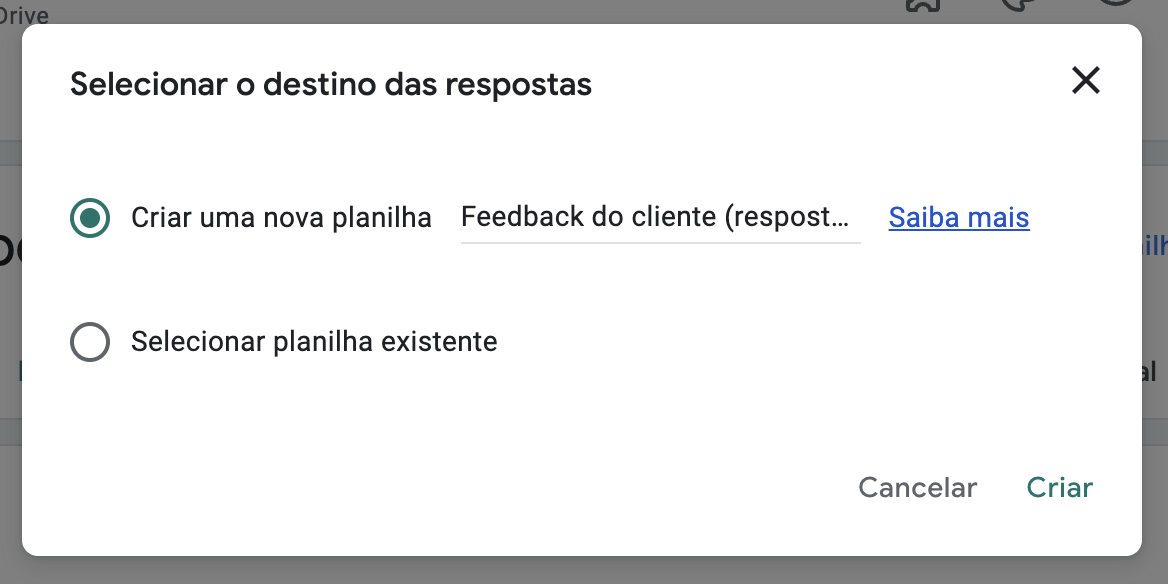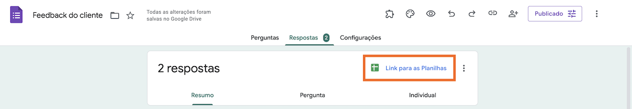 Se você quiser visualizar e acompanhar as respostas do formulário em uma planilha, pode conectar facilmente seu formulário do Google a uma planilha do Google.