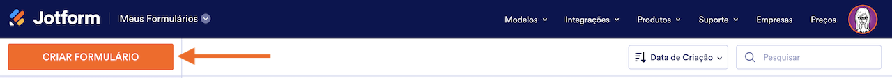 - Acesse o Criador de Formulários Jotform e clique em Criar Formulário.