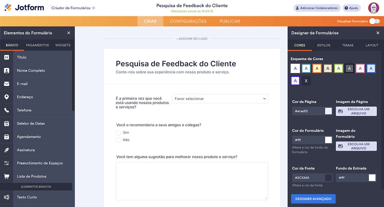 Crie um formulário e envie-o por e-mail para coletar informações valiosas e feedback dos clientes. Com o software certo, isso é fácil. Seja usando o Formulários Google ou as ferramentas Jotform para criar e compartilhar seus formulários, você pode confiar que eles vão impressionar seus respondentes e fornecer o feedback necessário para aumentar a fidelidade do cliente e expandir sua marca.